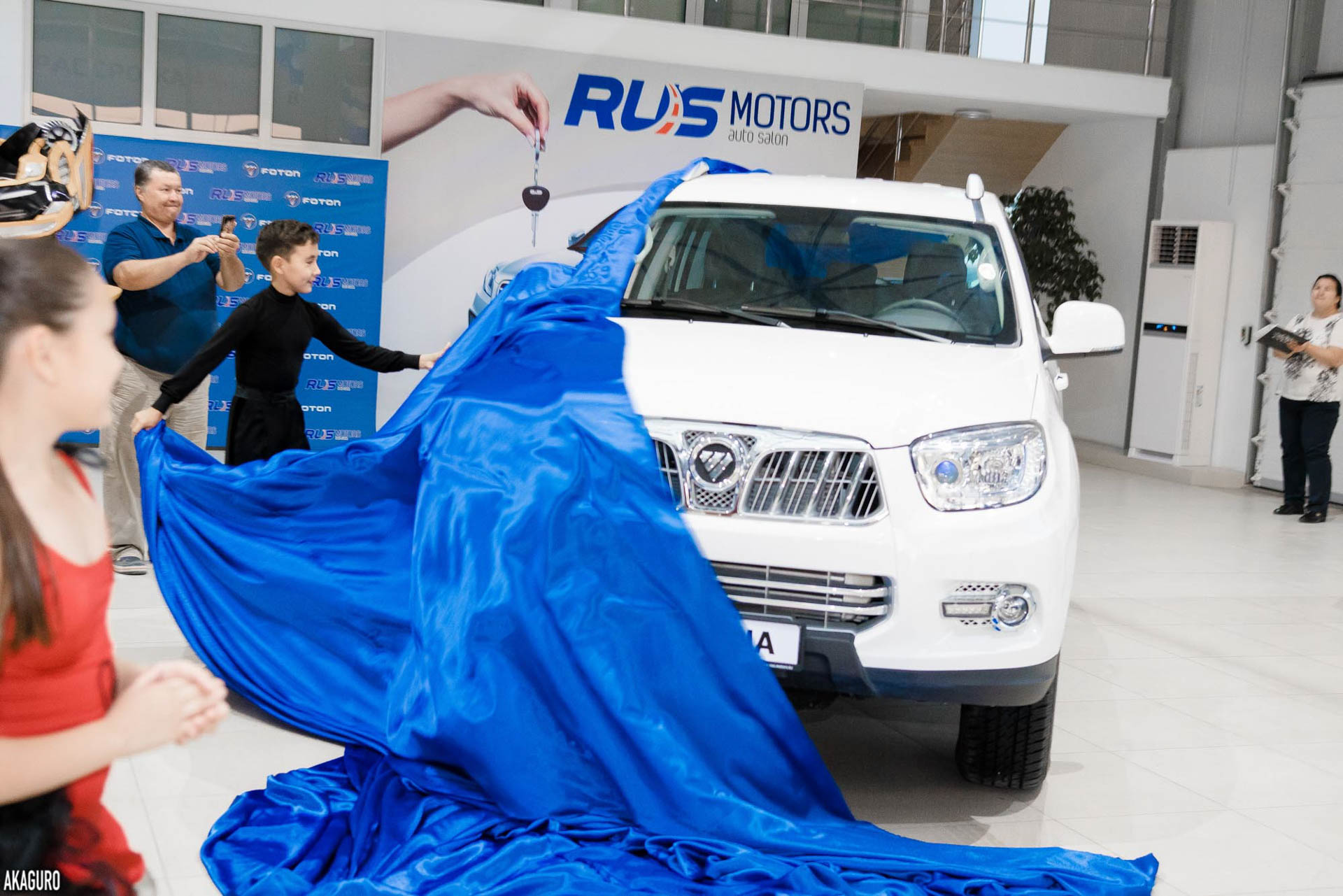 Взрослых, конечно, больше интересовали автомобильные новинки. Особый интерес вызвал внедорожник Foton Sauvana, недавно появившийся в салонах дилеров. Презентация этого автомобиля началась с зажигательного танца ча-ча-ча в исполнении юниоров танцевального клуба «Аэлита», они же и открыли автомобиль. Консультанты «Рус-Моторс» рассказали об особенностях комплектаций и технических нюансах новинки, и помогли потенциальным владельцам определиться с выбором. Внедорожник Foton Sauvana привлекал мужественным дизайном и тщательной проработкой деталей.