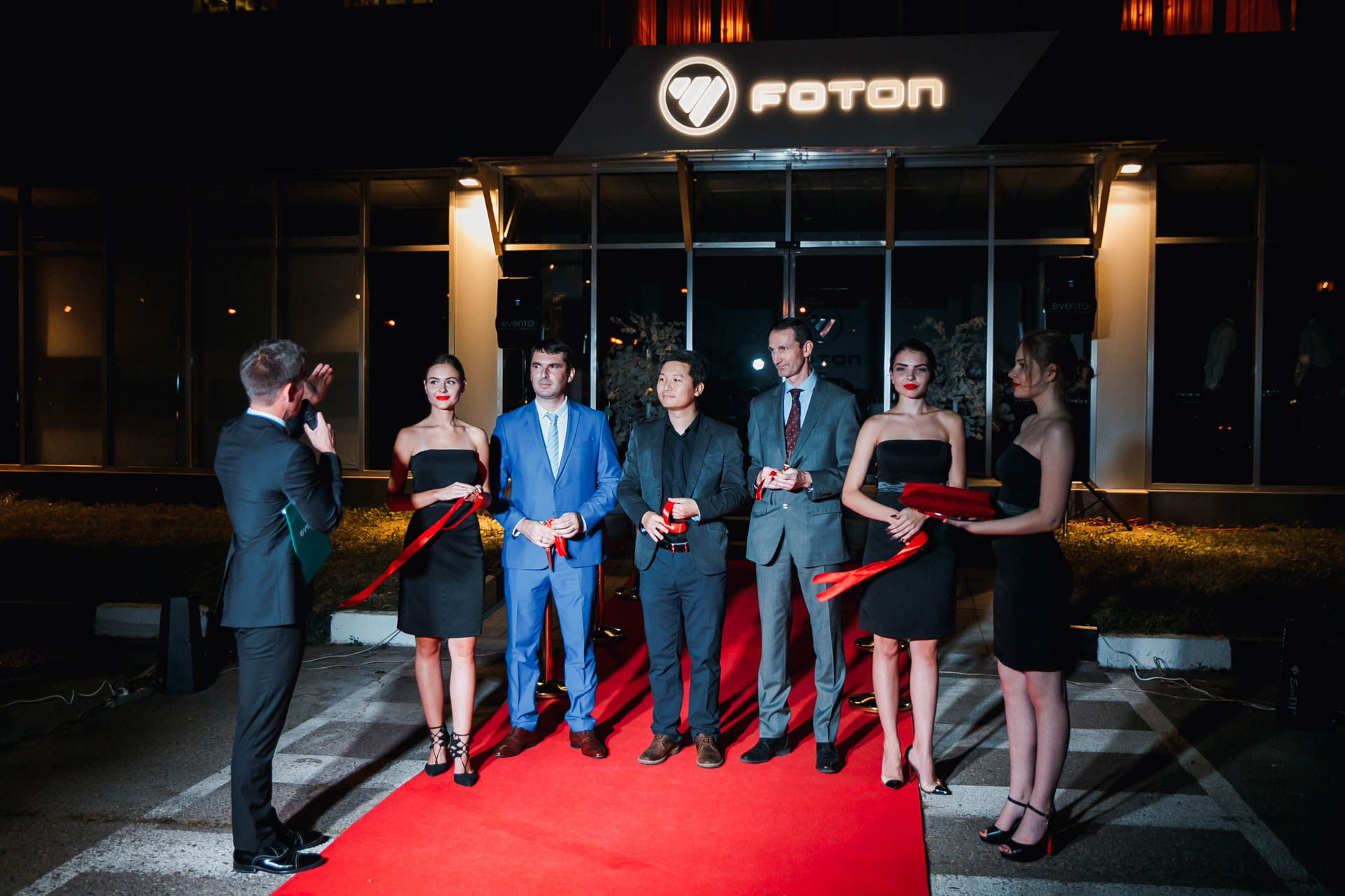 Перед открытием уже на въезде в ДЦ гостей встречали веселые ходулисты в белых фраках и цилиндрах. В 19.00 под звук фанфар и всплесков пламени огненных пушек заместитель генерального директора компании FOTON Liu Xuguang и Виталий Васильевич Воробьев, Директор департамента продаж автомобилей и развития дилерской сети на внутреннем рынке, перерезали ленточку, поприветствовали собравшихся гостей торжественной речью и пригласили всех пройти по красной дорожке в новый автосалон.